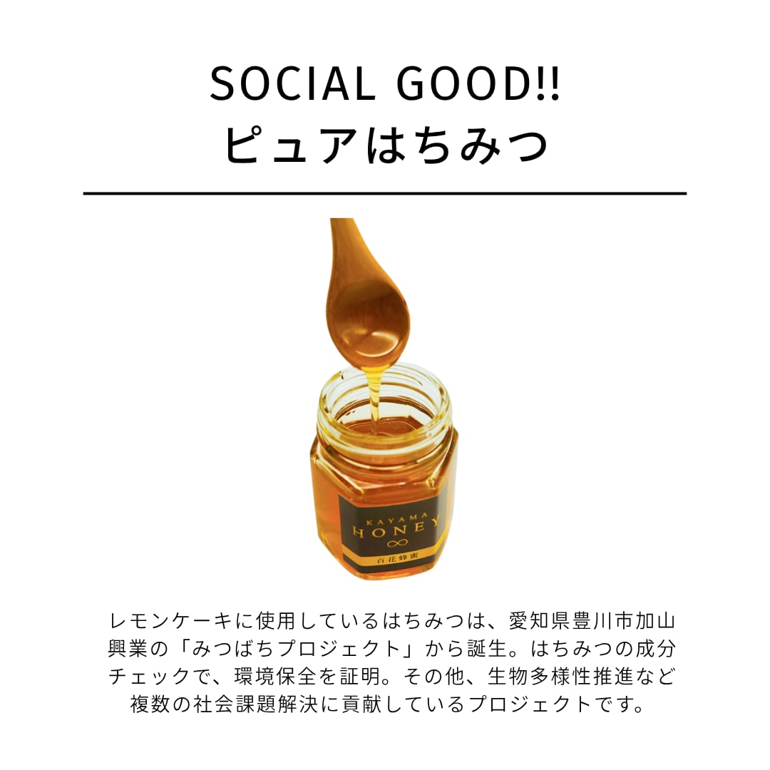 KAYAMAはちみつをたっぷりと使用した爽やかレモンケーキで、はちみつ漬けピールの果肉感と口に入れたときのシャリっと食感が一層味わいを引き立てます。
