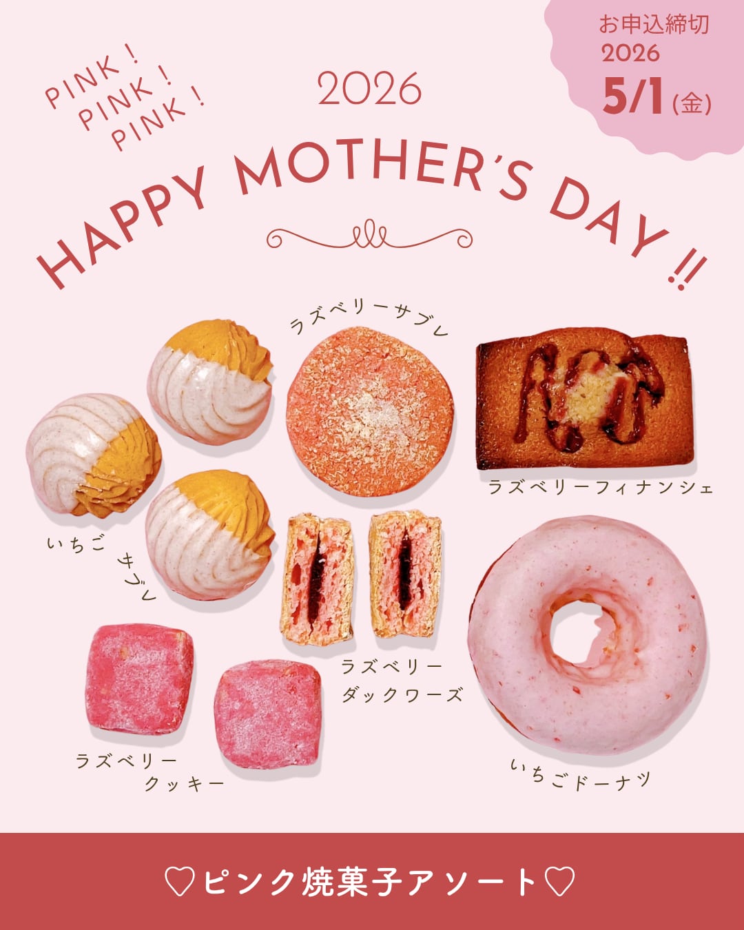 バウムクーヘンやドーナツ、サブレなど、焼菓子を詰め合わせた母の日限定セットです。